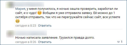 Пока сайт Пенсионного фонда работает со сбоями, потому что на него большая нагрузка: все ринулись оформлять выплаты. Некоторые мамы рассказывают, что им удалось подать заявление ночью.